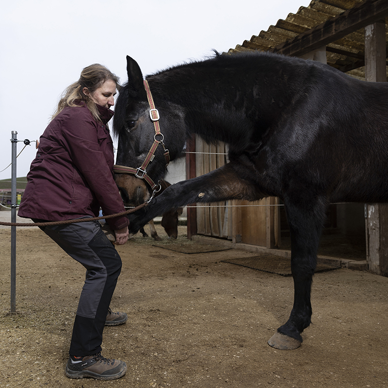 Ces «touch», divers exercices et l’utilisation de bandages et harnais Ttouch favorisent la concentration, une bonne coordination et une meilleure perception corporelle pour l’animal.